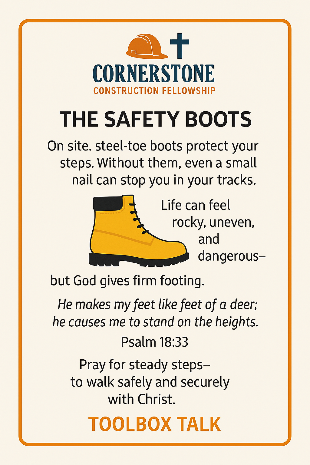 Hard Hat Hope Toolbox Talks Week 3 – The Safety Boots